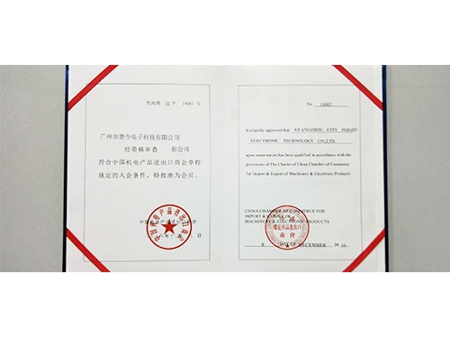 • 普今电子成为中国机电产品进出口商会会员