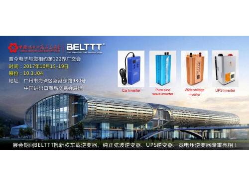 The 122nd Canton fair, BELTTT will show the new Car inverter, Pure sine wave inverter, UPS inverter and Wide voltage inverter